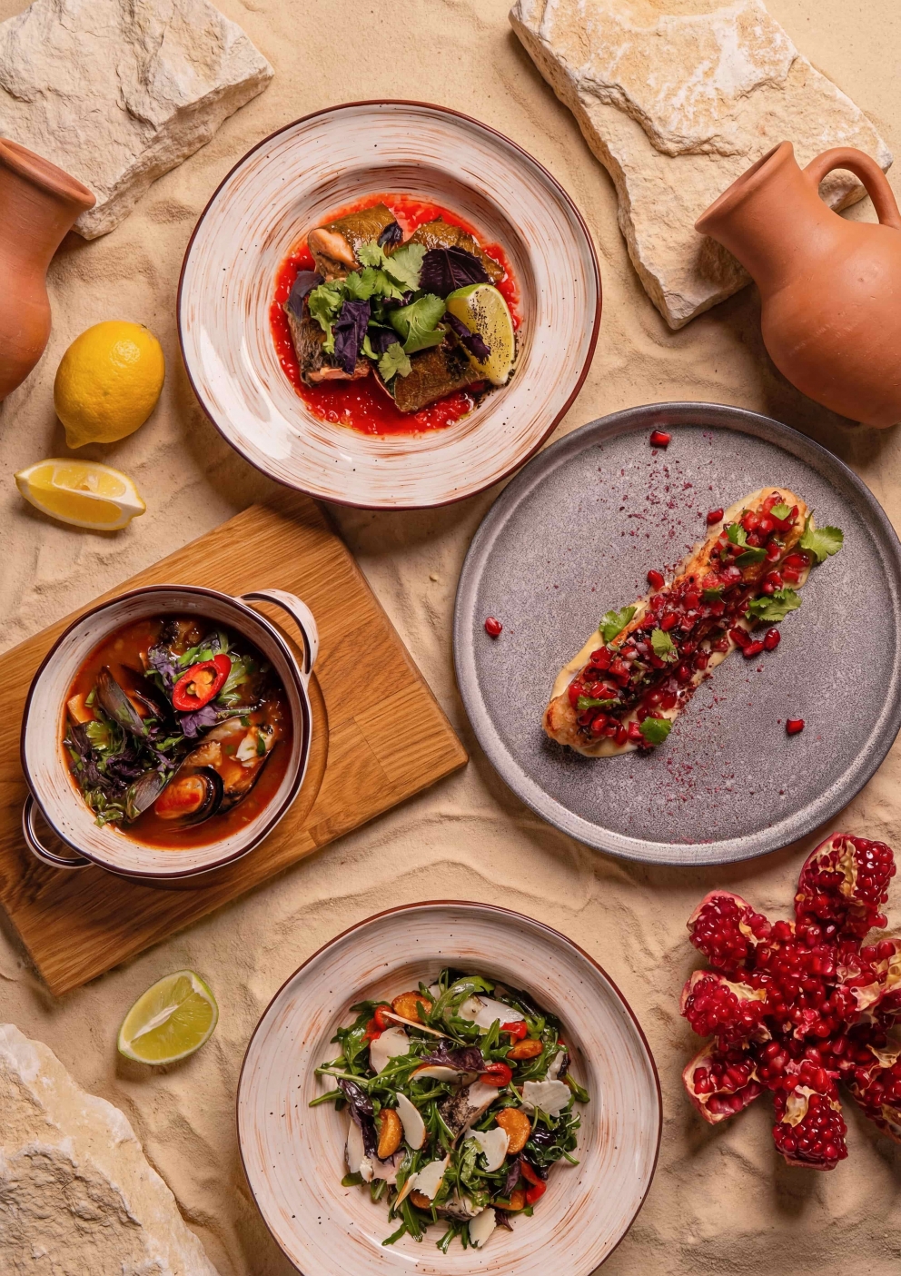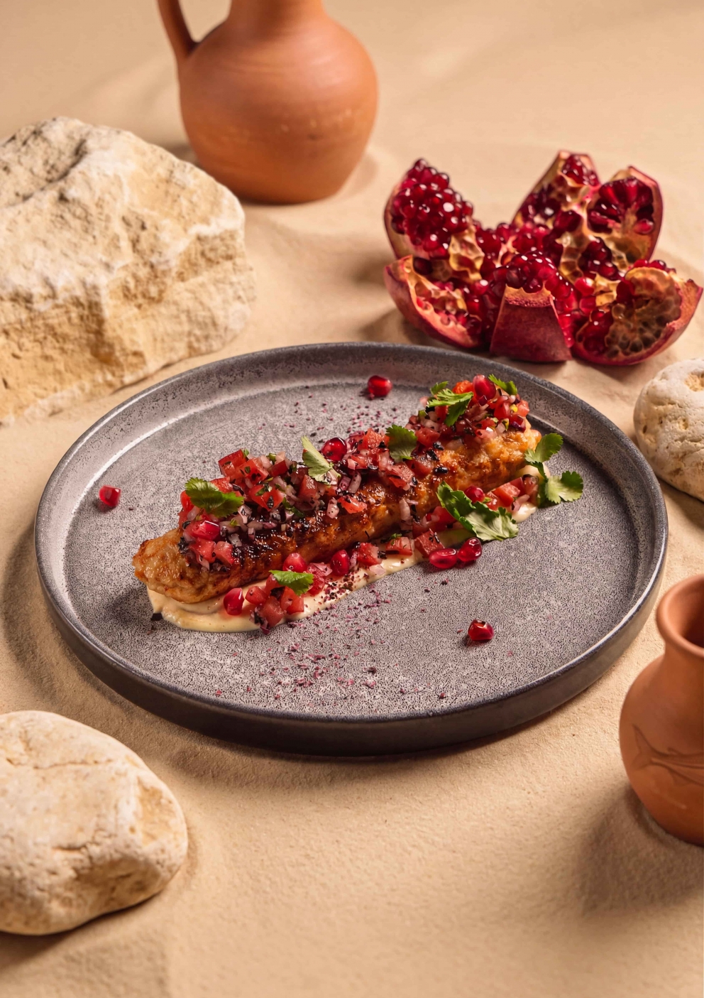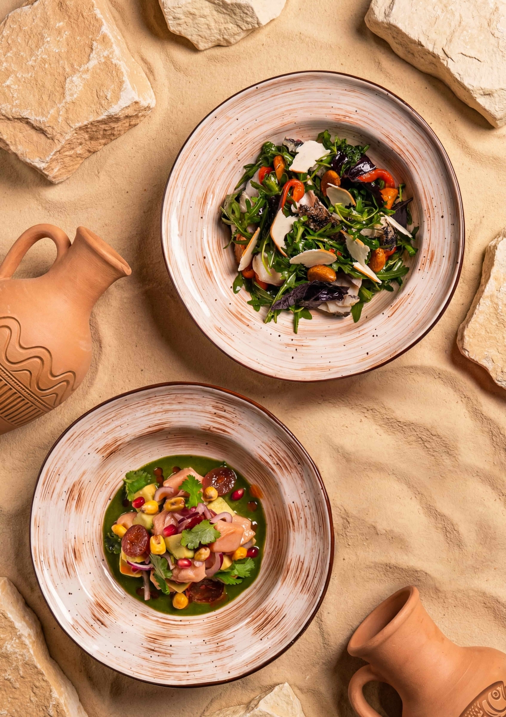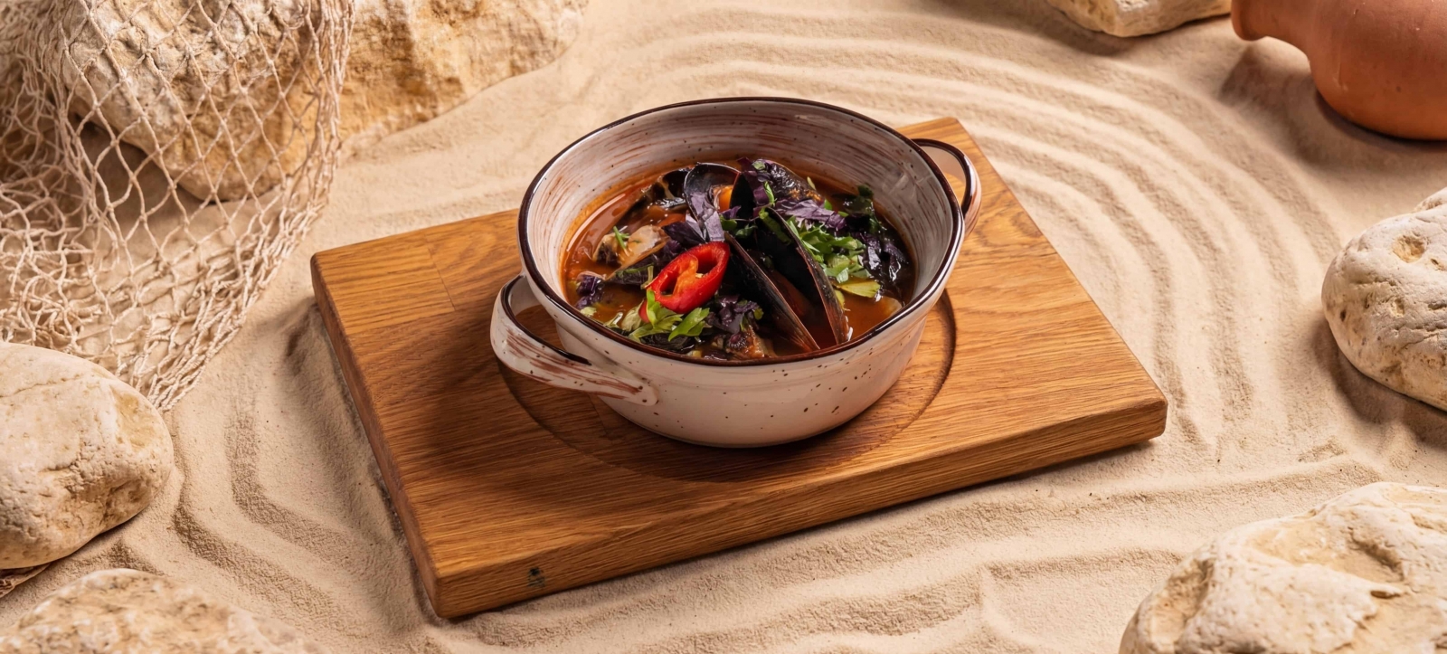 Открывает вечер севиче из форели — нежные ломтики в цитрусовом маринаде с соусом киндзмари и хрустящей кукурузой. Следом — салат с кефалью и копчёным сулугуни: тёплый дымок сыра, зелень и грузинские специи. На горячее — сочный люля-кебаб из креветок с густым чесночно-сливочным чкмерули и форель в виноградном листе с ореховой начинкой, запечённая до золотистой корочки. Завершает ужин воздушная Павлова «Морская ракушка» — меренга с кремом и свежими ягодами. Каждое блюдо подаётся с вином от грузинского бренда Askaneli, представленного в России компанией «Лудинг».