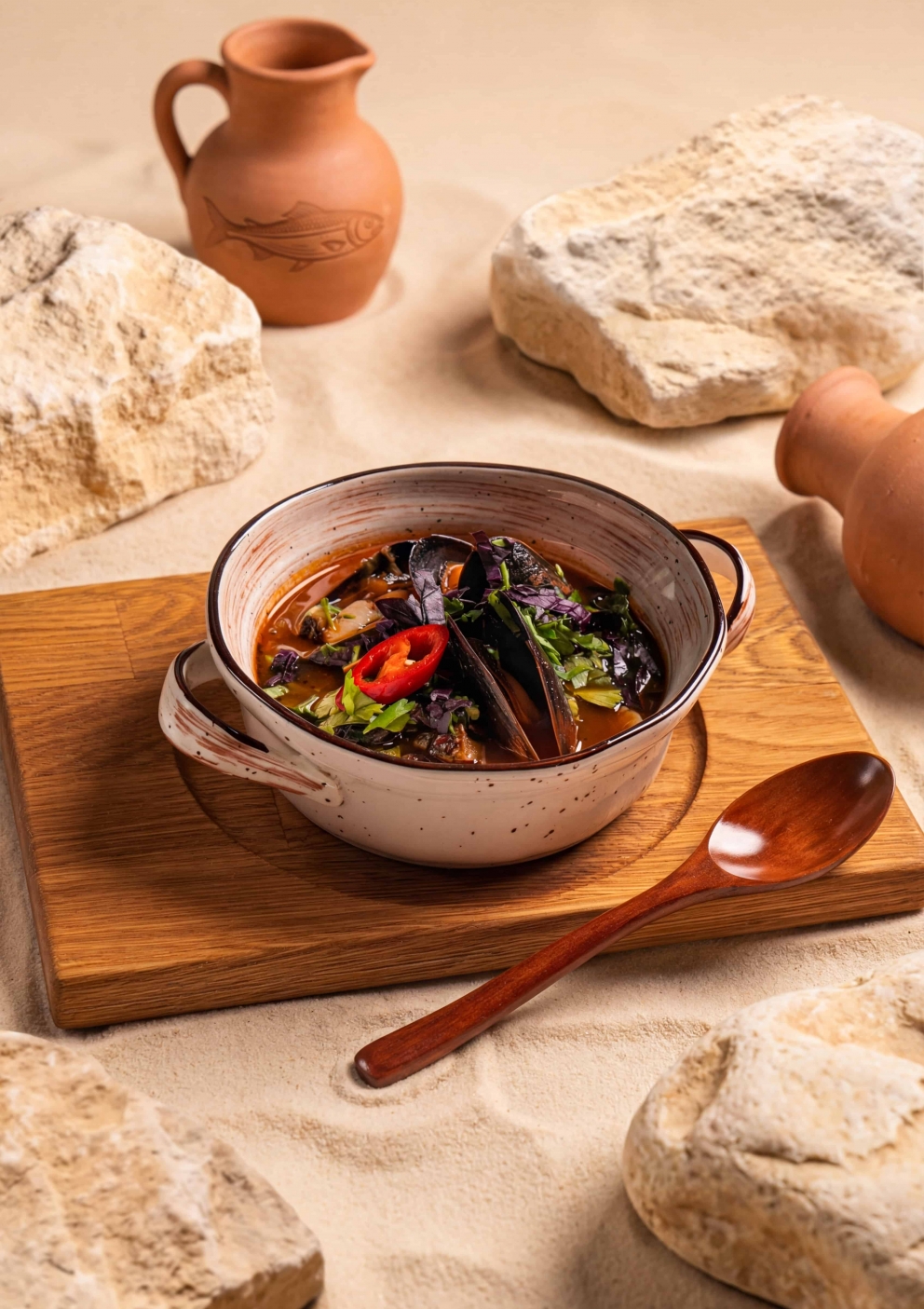 В Грузии рыбалку исторически начинали в мае, когда зацветал виноград, горные реки становились прозрачными, а рыба — особенно вкусной. Вдохновившись этой традицией, мы разработали гастроужин из пяти блюд, который проведут бренд-шеф и сомелье. Вы узнаете историю создания каждого блюда и откроете для себя грузинские вина, которые дополнят их вкус.