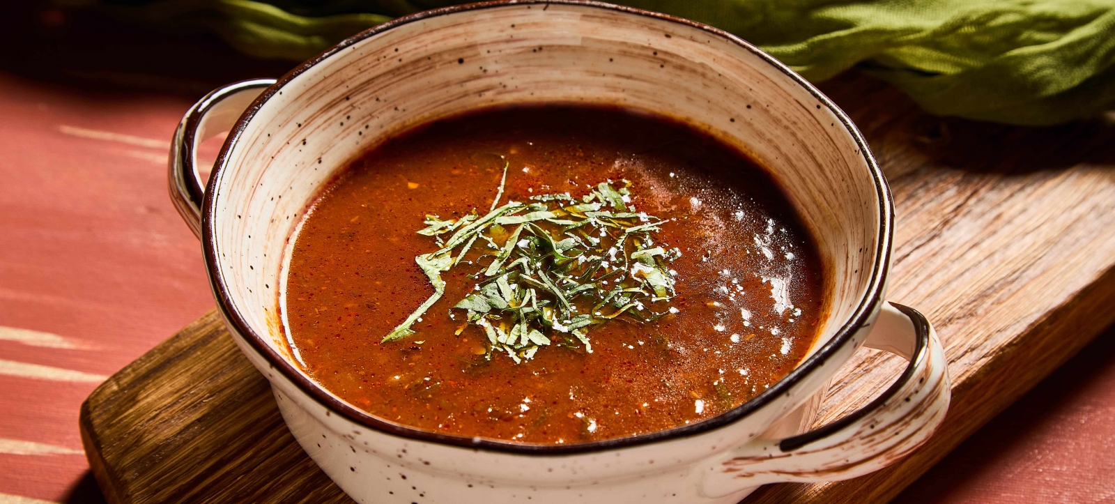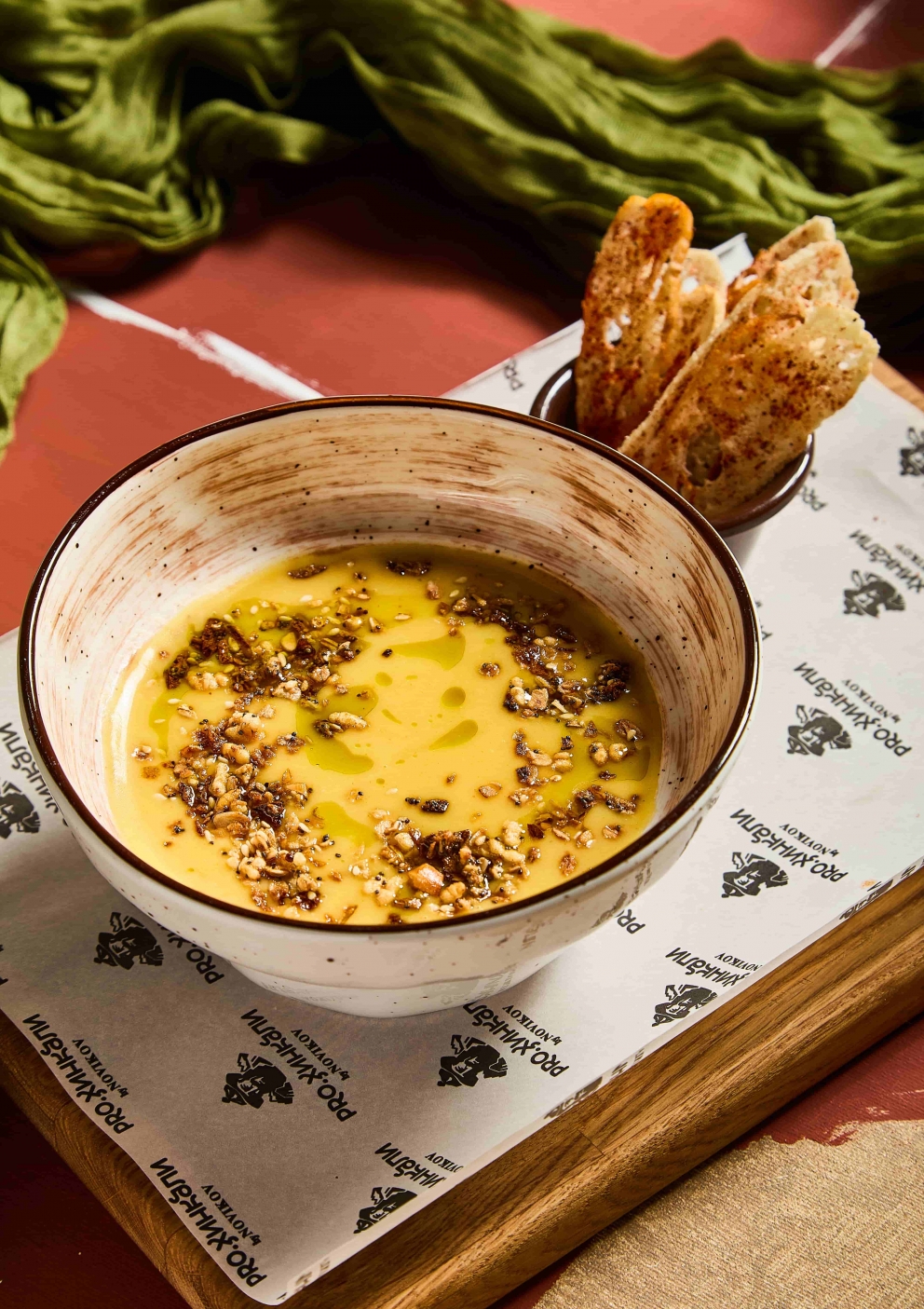 В качестве основы для сытного обеда идеально подойдут наши фирменные хинкали с сочной начинкой из грибов, насыщенный фасолевый харчо и нежный тыквенный крем-суп. Также на горячее — шашлык из баклажанов в пряной глазури и ароматный оджахури с белыми грибами и гурийскими огурцами. И, конечно, мы не обошли вниманием грузинскую выпечку — вы сможете попробовать традиционное лобиани с фасолью и авторское хачапури с картофелем и грибами.