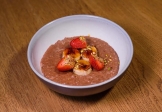 Рисовая каша, молоко, соль поваренная, паста шоколадная нутелла, крем шоколадный, клубника свежая, банан, сахар песок, фисташки дробленые