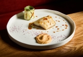Тающее филе черной трески, замаринованное в медовом соусе и запеченное до карамельной корочки. Подается с запечённым цукини и сливочным соусом с аджикой