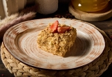 Коржи: мука пшеничная, сливочное масло, желток, сметана 30%, уксус, соль. Крем: молоко, бурбонская ваниль, сахар, кукурузный крахмал, мука пшеничная, желатин, сливочное масло, сгущенное молоко, сливки 33%. Украшение: крошка из коржей, свежая клубника