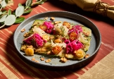 Кабачки, вода, фенхель, томаты черри, капуста белокочання, масло кахетинское, свекла, уксус яблочный, масло растительное, сахар, соль, миндаль, соус наршараб, лук красный крымский, горчица зернистая, морковь, сельдерей стебель, соус чили сладкий, аджика сухая, микрозелень, перец чили, соль сванская, соус соевый, чеснок, кинза, кориандр, лавровый лист, паприка, перец душистый, перец острый, перец черный